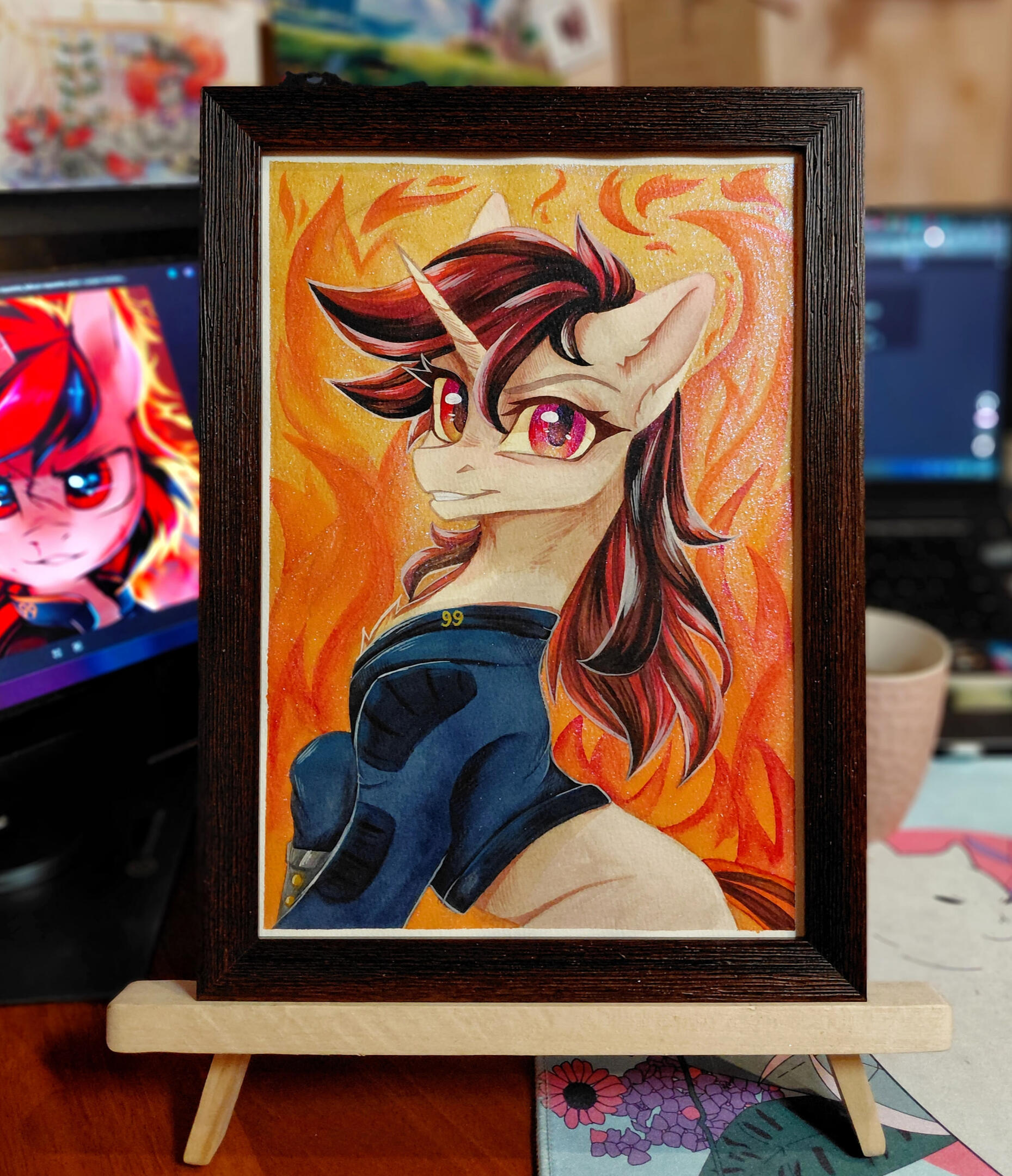 I make paintings on large canvases with watercolors and other materials that I can send by mail. price for size A3 format starts at $450 for mlp characters (gen4) and $500 for mlp oc or gen5. for A4 — $300 and $350. delivery from $30-60. add gold/silver potal or rhinestones +$10 A4 and +$15 A3. I also draw paintings with characters from the canon for auctions. You can follow them on my Twitter and Telegram channel. For any questions, write to me on Discord juliasunlight